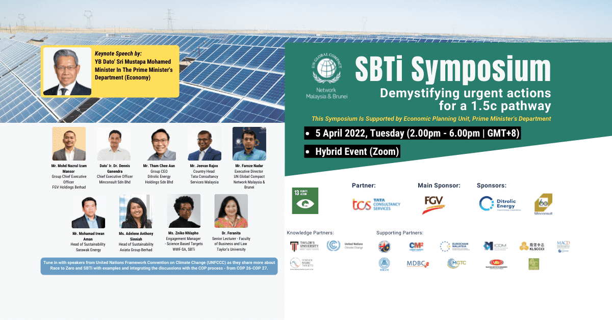 In line with the goal to address climate change, UN Global Compact Network Malaysia & Brunei (UNGCMYB) welcomes business leaders to progress their climate action through the SBTi.